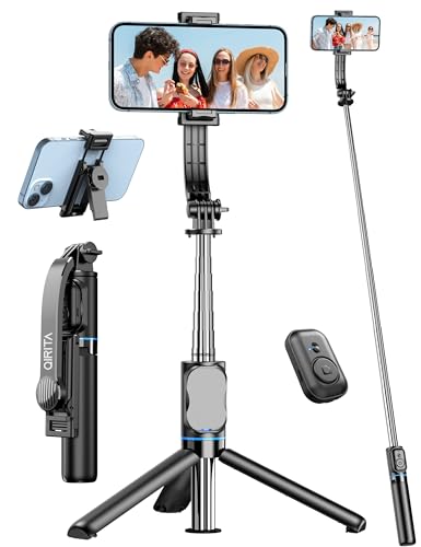 Selfie-stick med stativ, 113 cm utdragbar, 360° roterbar, med fjärrkontroll och avtagbar mobilhållare, ultralätt och bärbar, kompatibel med iPhone, Samsung och Android-smartphones