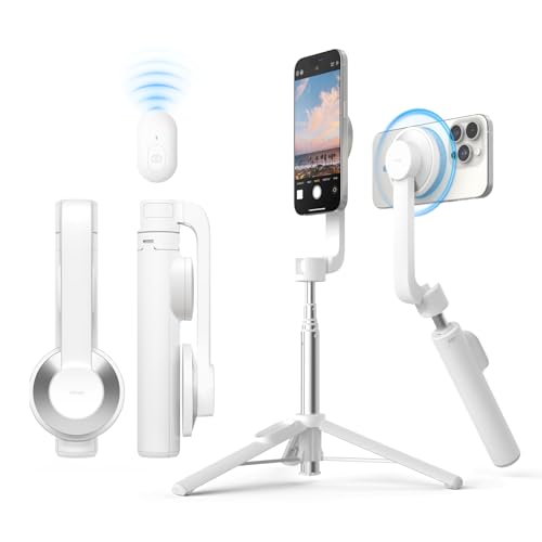 KIWIFOTOS Magnetiskt ministativ för iPhone, MagSafe-selfiepinne med trådlös fjärrkontroll för iPhone 16, 15, 14, resor, vlogging, videoinspelning, mobiltelefonstativ för Samsung Google Pixel