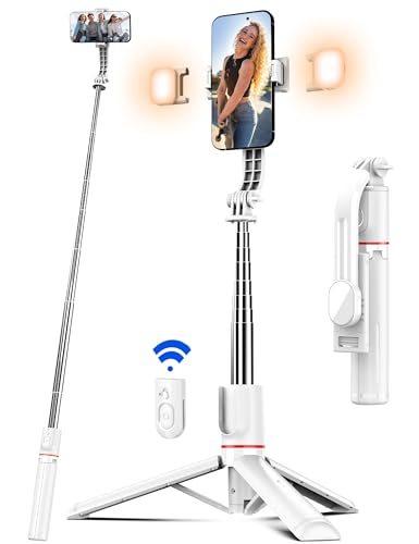ATUMTEK 1,3 m selfiepinne/stativ, allt i ett, utdragbart telefonstativ med Bluetooth-fjärrkontroll, 360° rotation för iPhone & Android-telefoner, selfies, videoinspelning, vlogging, livestreaming, vit