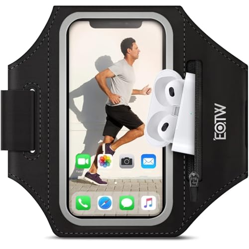 EOTW Mobiltelefonficka, jogging – sportarmband, mobiltelefonhållare, arm med Airpods-fodral för iPhone 16/15/14/13/12/11 Pro/X/8 Galaxy S24/S23/S22 FE mobiltelefonarmband, jogging för löpning (5,4 tum