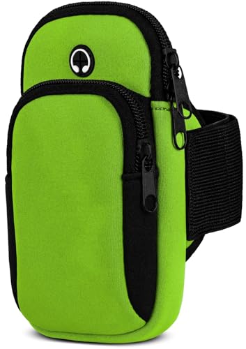 moex Mobiltelefonficka, jogging för Apple iPhone X/iPhone XS sportarmband, mobiltelefon av neopren, mobiltelefonhållare, arm för löpning, sportarmband, löparmband med 2 fack, löpficka, jogging – grön