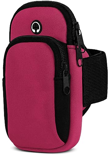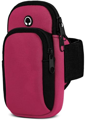moex Mobiltelefonficka, jogging för iPhone 6s/iPhone 6, sportarmband, mobiltelefon av neopren, mobiltelefonhållare, arm för löpning, sportarmband, löparmband med 2 fack, löpficka, jogging – rosa