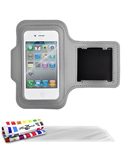 Muzzano® Apple sportarmband 4/iPhone 4S [TONIC IP4] [grå] + 3 "UltraClear" skärmskydd + Muzzano® stil och chiffong fri - det ultimata, halkfria och hållbara skyddet för din Apple iPhone 4/iPhone 4S