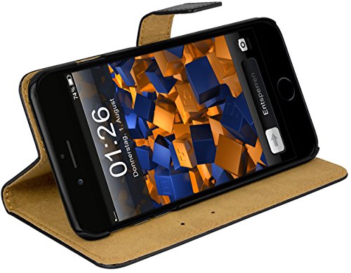 mumbi Flip Case i äkta läder kompatibelt med iPhone SE/5/5S fodral läder väska plånbok svart