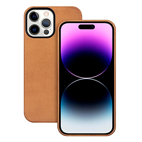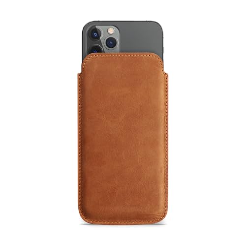 WIIUKA skal för iPhone 16 Pro/16, läderfodral extra tunt, premium läder, design mobiltelefonfodral väska ärm vintage konjak brun