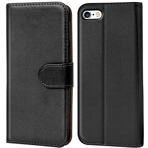 Verco plånbok för iPhone 5S skal, iPhone SE skal (1. Generation) mobilskal skyddsfodral väska för Apple iPhone 5 / 5S / SE Case med korthållare av pu läder, Svart