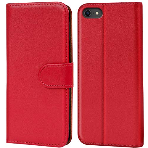 Verco plånbok för iPhone SE 2022 skal, iPhone SE 2020 mobilskal skyddsfodral väska för iPhone SE 2./3. Generation Case med korthållare av pu läder, Röd