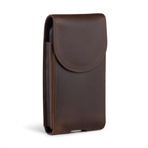 Hengwin Läder Mobiltelefon Hölster Fall Herr Bälte Väska passar för iPhone 16 15 14 13 12 Pro Max/Plus, Samsung Galaxy S25 S24 S23 S22 Ultra S25+ Mobiltelefonhållare Mobiltelefonfodral (kaffe)