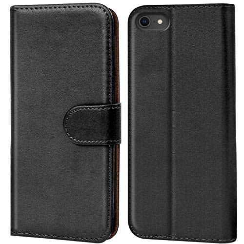 Verco plånbok för iPhone SE 2022 skal, iPhone SE 2020 mobilskal skyddsfodral väska för iPhone SE 2./3. Generation Case med korthållare av pu läder, Svart