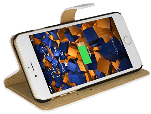 mumbi äkta läder Bookstyle Case kompatibel med iPhone 6 Plus/6S Plus skal läder väska Case Wallet, vit