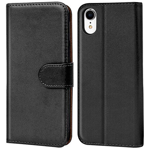 Verco plånbok för iPhone XR skal, mobilskal skyddsfodral väska för Apple iPhone XR Case med korthållare av pu läder, Svart