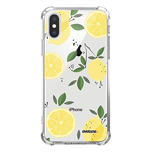 Evetane kompatibel med iPhone X/XS silikonhörn starkt fullständigt skydd genomskinligt citronmönster trendig