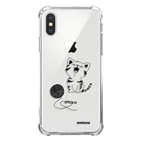 Evetane kompatibel med iPhone X/XS silikonhörn starkt fullständigt skydd resistent transparent katt och ull tryckt mönster trendig