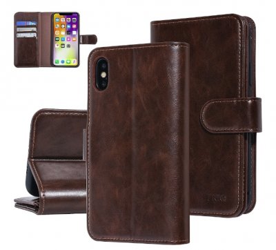 UNIQ Plånboksfodral iPhone X MAX / iPhone Xs MAX Mörkbrun 9 Kortfack