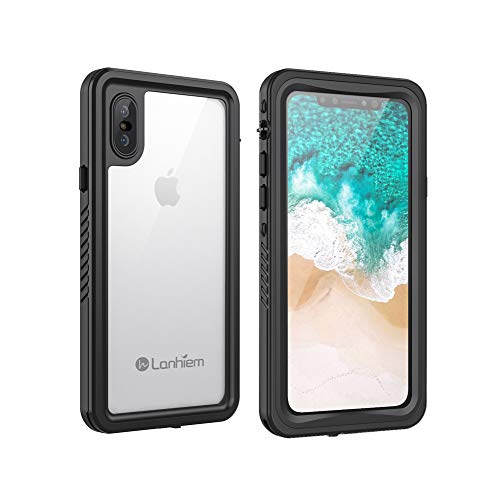 Lanhiem iPhone XS, iPhone X skal [IP68 Vattentät] 360° Full Body Protection, stötskyddad dammtät anti-snö fodral iPhone XS integrerat fodral med skärmskydd, svart