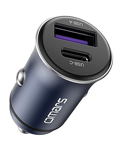 Omars USB-billaddare, [USB C 35W+USB A 18 W] 5A metall billaddare med QC3.0 Snabbladdning för iPhone12 Pro MAX Mini Samsung S21 Huawei LG iPad Airpods