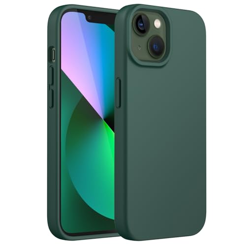 JETech Silikonskal för iPhone 13 6,1-Tums, Silky Soft Touch Skal med Hela Kroppen, Stötsäker Skal med Mikrofiberfoder (Midnattsgrön)