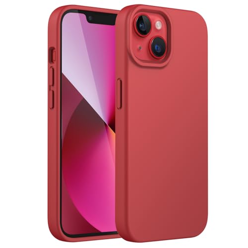 JETech Silikonskal för iPhone 13 6,1-Tums, Silky Soft Touch Skal med Hela Kroppen, Stötsäker Skal med Mikrofiberfoder (Röd)
