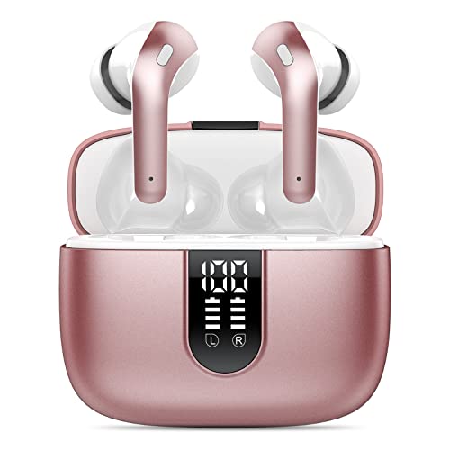 Trådlösa hörlurar, Taopod X08 Bluetooth-hörlurar, trådlösa öronsnäckor med mikrofon, 40 timmar speltid, Touch-kontroll, Ipx7 vattentäta hörsnäckor (roséguld)