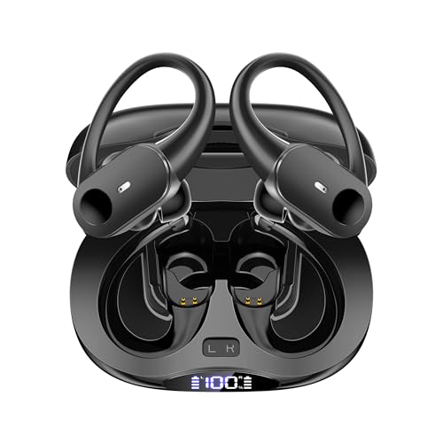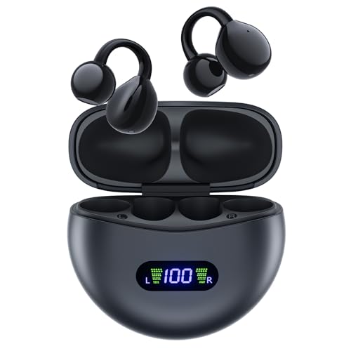 CAPOXO hörlurar med öppen öra, 40 timmars speltid trådlös klämma öronsnäckor, lätta, glasögonvänliga, Bluetooth 5.4 med digital display laddningsfodral, IPX7 vattentäta öppna öronsnäckor för sport
