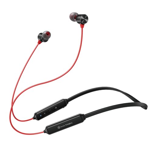 YATWIN Bluetooth-hörlurar sport i örat, Bluetooth 5,0 sporthörlurar med 16 timmars HiFi-ljud, IPX7 vattentäta, magnetiska ultralätta hörlurar med brusreducering MEMS-mikrofon för jogging, röd