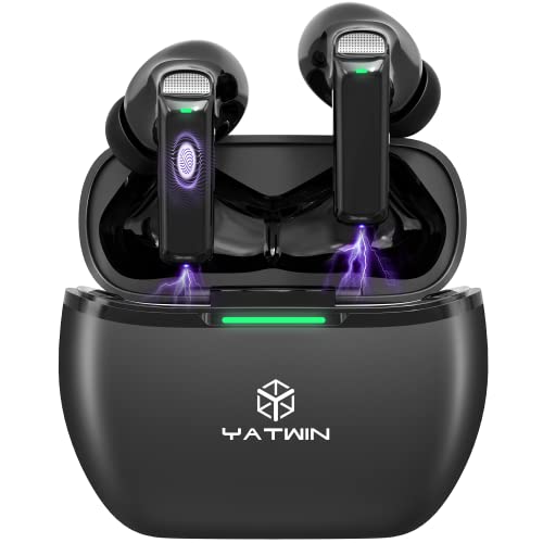 YATWIN Bluetooth 5.3-hörlurar in-ear trådlösa hörlurar med integrerad mikrofon, ENC klart samtal stereoljud Ipx7 vattentäta trådlösa hörlurar sport 32 timmars svart
