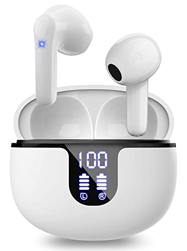 Trådlösa öronsnäckor, Bluetooth 5.3 kraftfull bas äkta trådlösa hörlurar, IPX7 vattentät USB-C-knappkontroll HiFi-ljud i örat CVC8.0 Tech brusreducering hörlurar, ettstegs parning, LED-display headset