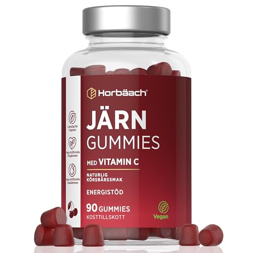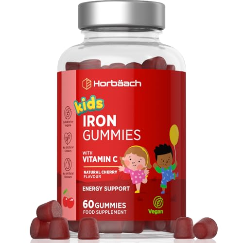 Järn Gummies Barn 7mg och Vitamin C | 60 Gummies Vegan | Iron Supplement for Kids with 20 mg Vitamin C | av Horbaach