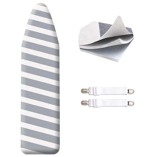 SheeChung 48 x 15 strykbrädsöverdrag och dyna – med elastiska kanter och 3 anslutningsremmar, premium kraftig 3-lagers silikonbelagt skydd, värmereflekterande, brännbeständig