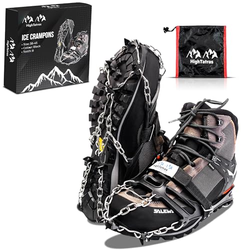 HighTatras Wandelstijgijzers sko krampor storlek L 38-45 spikar anti-slip berg vandring krampor för snö is för vinter vandring 8 spikar i härdat stål (Svart)