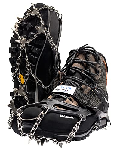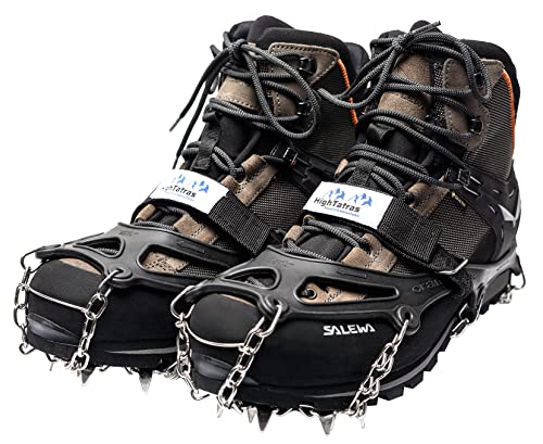 HighTatras Wandelstijgijzers sko krampor storlek L 38-45 spikar anti-slip berg vandring krampor för snö is för vinter vandring 18 spikar i härdat stål