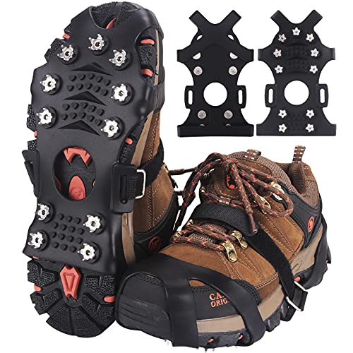 HONYAO Is Snögrepp, Stegjärn för Skor Stövlar, Is-stegjärn för Män Kvinnor, Snö-stegjärn i Rostfritt Stål för Vinter Vandring Utomhus Fiske Gå Till Fots, L