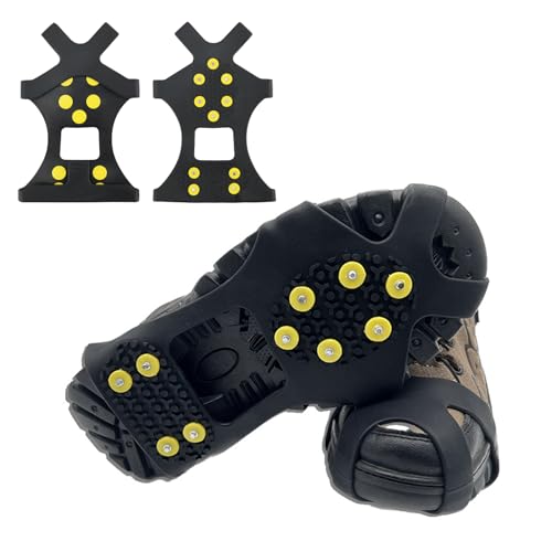 UMIUP stegjärn för skor, 10 tänder skoklor, halkfri skoklo, isklo för att leka i snön med spikar i rostfritt stål för vandring, snö, is, vandring, isfiske ((M (EU 35–39))