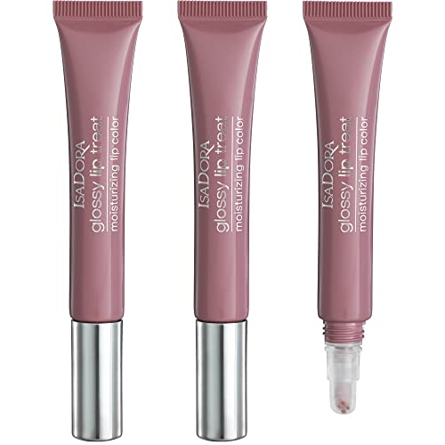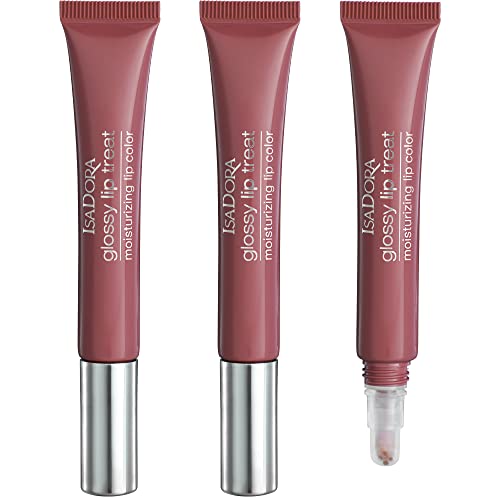 IsaDora Glossy Lip Treat Lip Gloss – Mjukgörande Mörkt Nude Läppglans med Plumping Effekt Återfuktande Glans Set med Hyaluronsyra + Jojoba + Kollagen –Vegan Makeup, 3-Pack 64 Raisin