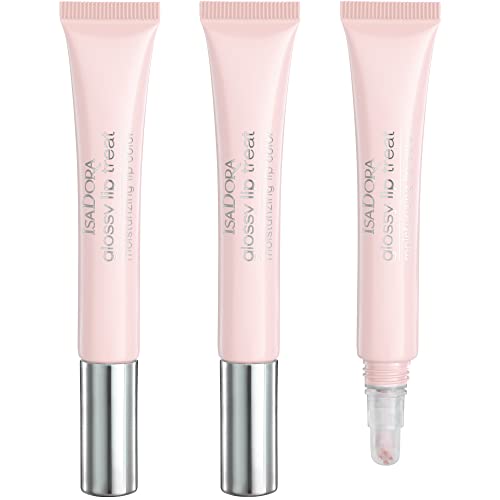 IsaDora Glossy Lip Treat Lip Gloss – Transparant Läppglans med Plumping Effekt Återfuktande Glans Set med Hyaluronsyra + Jojoba + Kollagen –Vegan Makeup, 3-Pack 50 Clear Sorbet