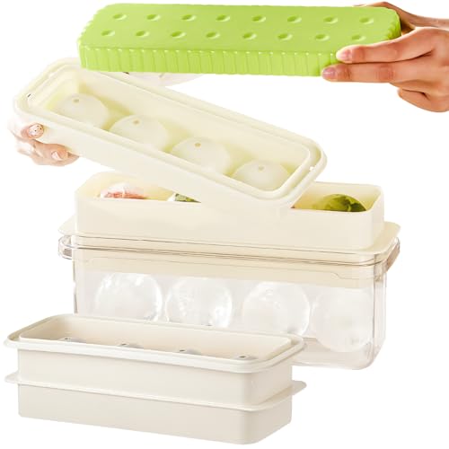 Rund isbitsform, isbitsbehållare med lock - 8 stora isbollar 2,28 tum (5,8 cm), lätt att ta bort sfäriska isbitar på en sekund