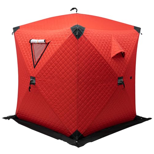 VEVOR Bärbart isskydd, 1-2 personer, isolerat popup-isfisketält, 24 kvadratmeter fiskeområde, navstil is shanty för vinterfiske, iskub med ankare, rep, bärväska, 152 x 152 cm, röd
