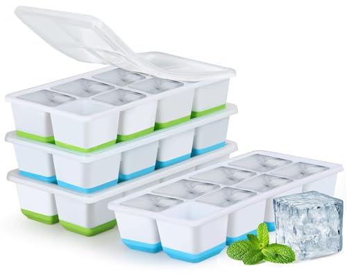 DOQAUS Ice Cube Trays 4 Pack, Flexibel Easy-Release Silikon 14 Ice Trays med Spillbeständigt Avtagbart Lock, LFGB-certifierad och BPA-fri, Slitstark Isform för Whisky, Cocktail och Annan Dryck (grön)