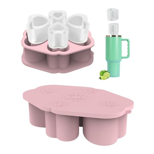 Iskubsbricka för dricksglas kopp 40 uns, BPA-fri silikon hjärtformad cylinder isform med lock, enkel fyllning och frigöring ismaskin för whisky, cocktail (rosa, 4 hålrum)