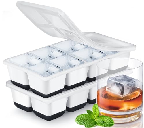FURNSII Stora Isformar med Lock, 2-Pack Silikon Isform Ice Cube Tray BPA-fri och LFGB-certifierad, Iskubsform Lätt att Släppa Ice Tray Iskubsbricka Isbitsform för Öl Cocktail Whisky (2 Svart)