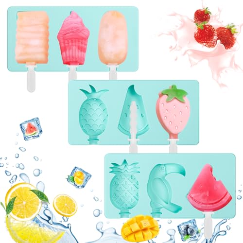 Glassformar pinnglass, 9 isformar silikon BPA-fri isform vattenis med lock gör-det-själv idéer isformar frukt papegoja glassformar för barn och vuxna glassformar