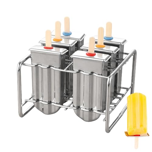 Monozoz Rostfritt stål Popsicle Formar, Metall Popsicle Form, Återanvändbar Popsicle Form, 6 st rostfria isglassformar med 100 träpinnar, hemgjorda glassformar med hållare