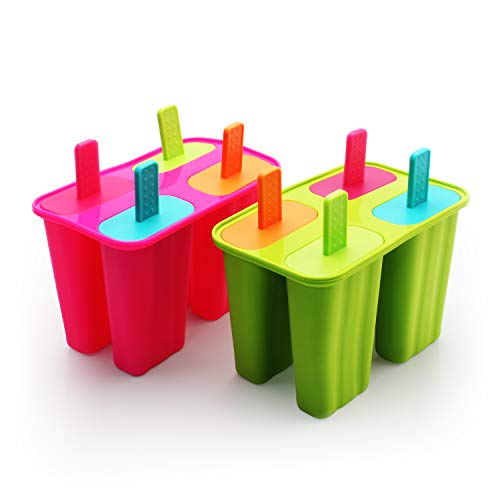 Glassformar, DEHUB Ice Lolly Moulds Set, BPA Free Isglassformar FDA Certified Food Grade Silicone Ice Cream Pop Maker med pinnar och droppskydd (Grön+Rose Red)