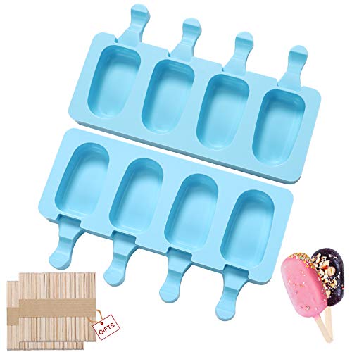 Sinnsally Mini Glassformar,Silikon Isglassformar silikonform,Ice Pop-formar,gör-det-själv glasspinne choklad frusen dessert glassbricka kakesikelformar klubbpinnar +100 st träpinnar (blå-2 stycken)