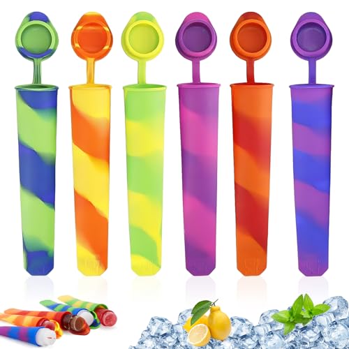 KIKVTER 6 stycken isformar silikon, glassformar på pinne isglassformar med filt, återanvändbara isformar av silikon, vattenisglassglassglassformar färgglada, gör-det-själv popsicle-formar för hemlagad