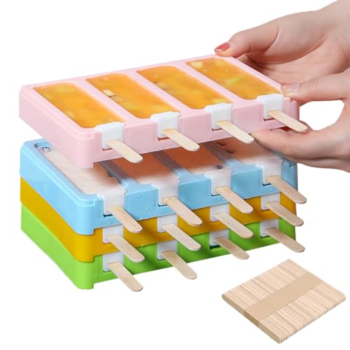 Dimoxii 4-delars Glassform med Lock, BPA-fri Glassformar, Stapelbara Popsicleformar Barnvänliga Isglassformar Hemlagad Glassform inkl. 200 Träpinnar