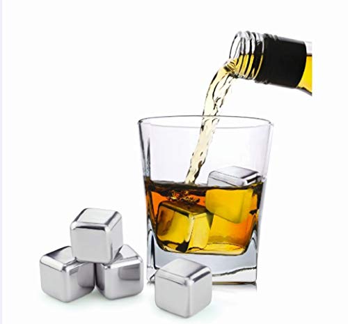 Rostfritt stål whiskystenar isbitar 6 st återanvändbara iskuber metall isstenar för kylda drycker whisky öl för fest semester bröllop 27 x 27 mm