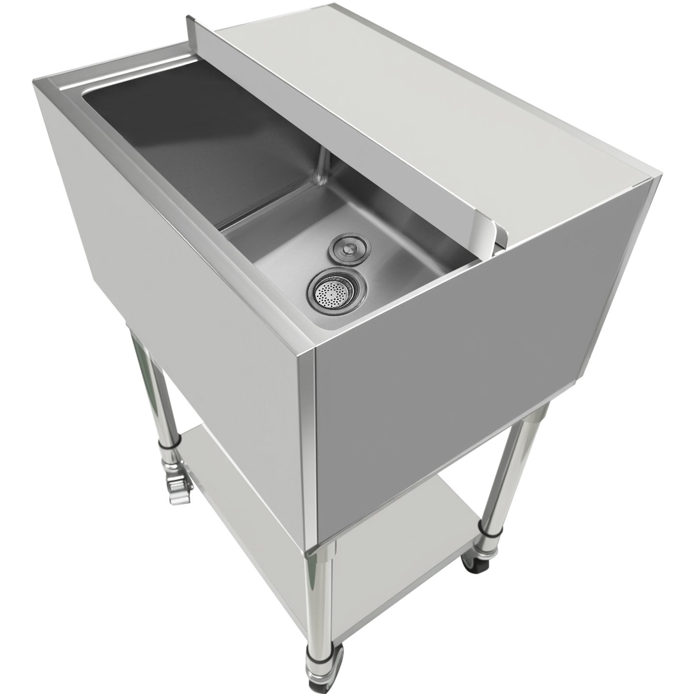 Isbinge/Islåda med Hjul & Två plastrännor Skjutbart lock 30 liter Rostfritt stål | Adexa CIBT1924C