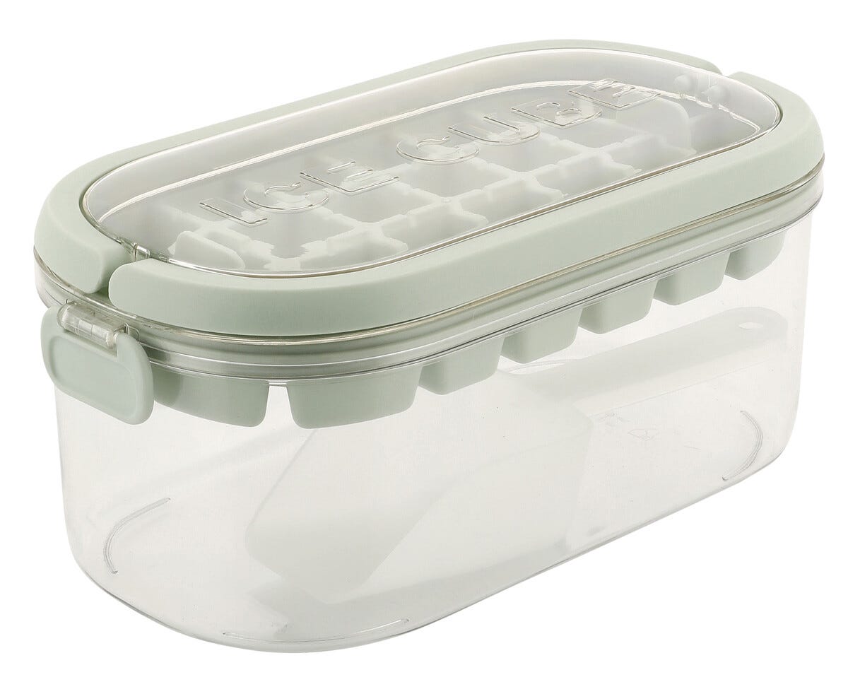 Isform med Låda, 50 Isbitar Islåda med Lock och Skopa