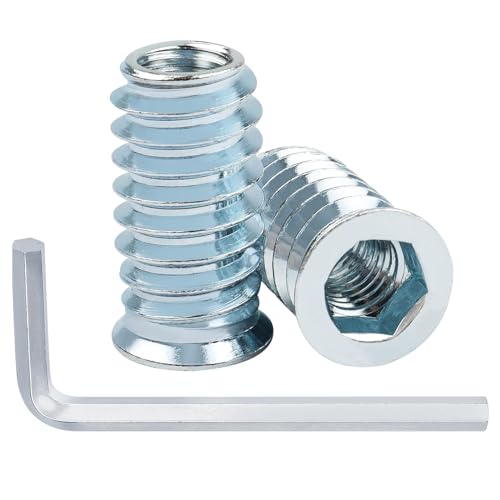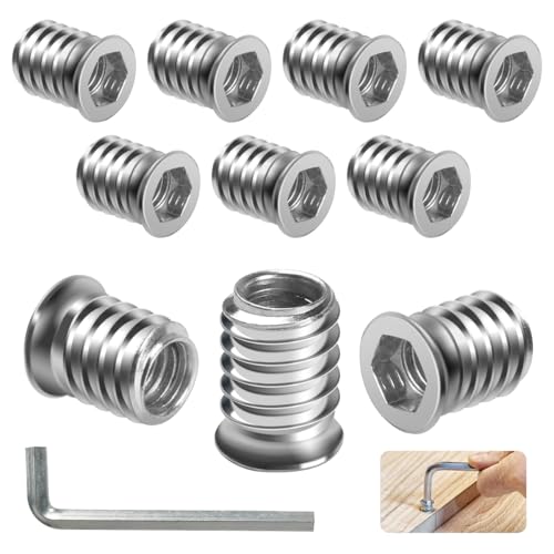 BOUMVID Inskruvsmuttrar M6 x 15, 10 stycken skruvhylsor gänginsatser trä skruvhylsa gänginsats galvaniserad islagsmutter, inskruvningsgänga, insexkant, muttrar för trämöbler